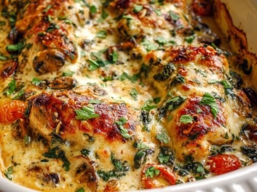 Baked Tuscan Chicken Casserole is the kind of dinner that earns its place in your weekly rotation after the very first bite. Tender chicken breasts baked under a creamy spinach, sun-dried tomato, and melted cheese topping — it is bold, satisfying, and naturally gluten-free and keto-friendly. As someone who makes chicken multiple times a week, this one stands out because it tastes like it took real effort when it actually did not.