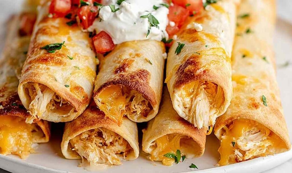 Crispy golden taquitos filled with a creamy shredded chicken and cheese mixture, seasoned with garlic, chili powder, and cumin. Ready in 30 minutes and perfect for weeknight dinners.