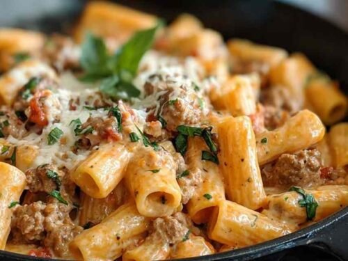 Creamy Italian Sausage Rigatoni is the kind of pasta that makes a Tuesday night feel like a special occasion. Rich tomato cream sauce, savory sausage, and thick rigatoni noodles come together with ingredients you can find at any grocery store. I made this on a rainy weeknight and my whole family went quiet at the table — the good kind of quiet.