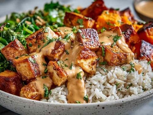 Greek Chicken Bowls have become my go-to dinner on nights when I want something that feels a little special but comes together without a lot of fuss. Juicy marinated chicken, cool homemade tzatziki, crisp vegetables, and a base of fluffy rice or quinoa — everything lands in one bowl and somehow tastes better than the sum of its parts.