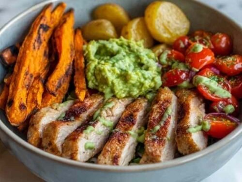 Grilled Herb Chicken Bowl with Sweet Potato Fries is the kind of meal that checks every box: high protein, big flavor, and on the table in 45 minutes. I make this bowl on busy weeknights when my family needs something hearty but still wholesome. It has become one of those recipes that earns a spot in regular dinner rotation without anyone complaining.