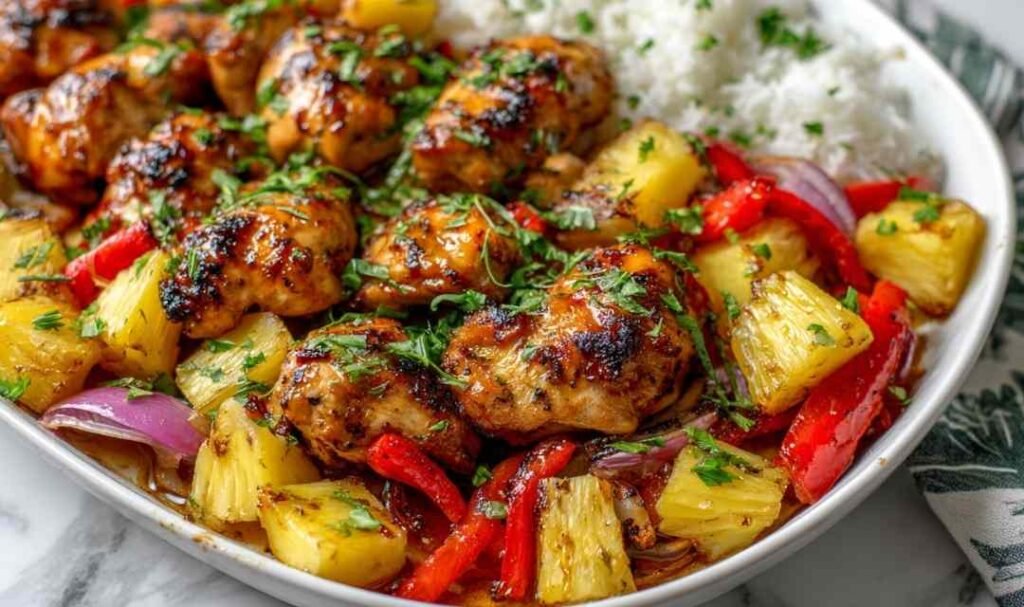 The easiest way to make Hawaiian Chicken Sheet Pan at home juicy chicken, sweet pineapple, and a bold honey soy glaze on one pan.