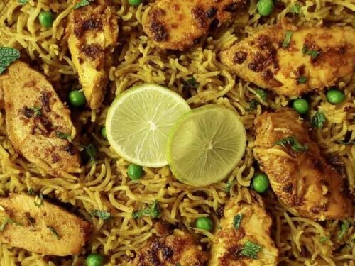 Roasted Green Beans: Simple and fast, green beans roasted or steamed with olive oil and garlic are a clean contrast to the richly spiced rice. This Easy Chicken Breast and Green Beans recipe shows how well this veggie works alongside an herb-forward chicken dish.