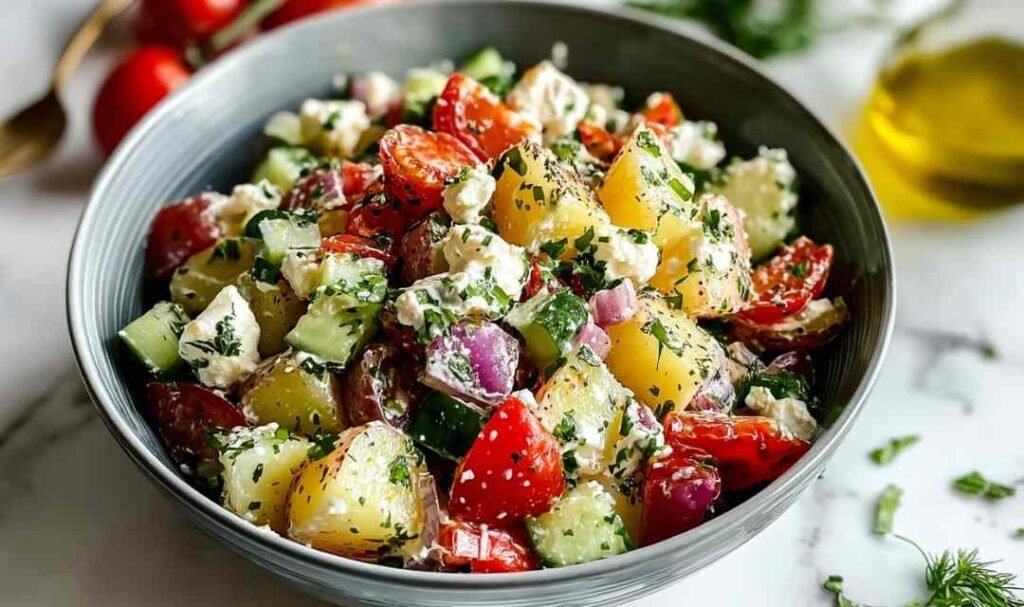The best way to make Turkish potato salad at home — a fresh Mediterranean dish with sumac, lemon, feta, and crisp vegetables ready in 30 minutes.